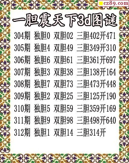 > 一胆震天下独胆2025312期3d图谜(原创)