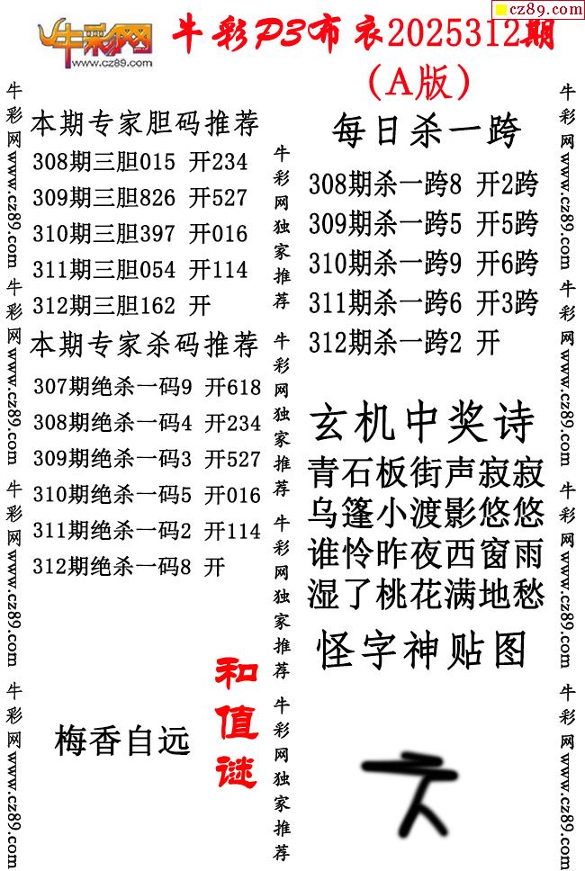 牛彩P3布衣25年312期AB版图谜(精华版)-「3d开机号和试机号」今天_3d开机号近100期查询_3d试机号分析_3d走势图-福彩3D