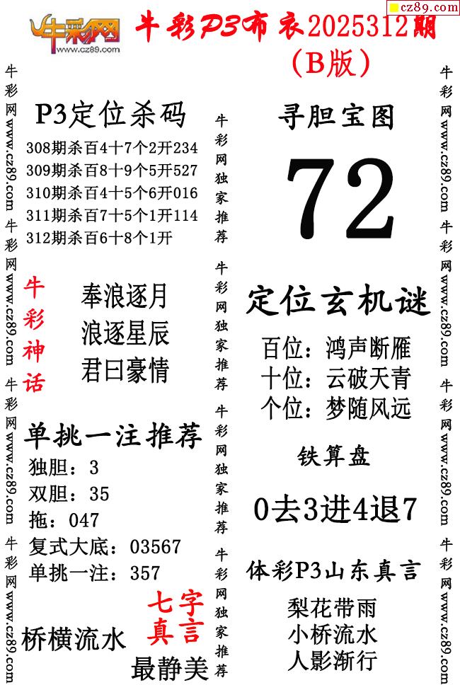 牛彩P3布衣25年312期AB版图谜(精华版)