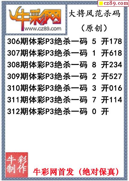 大将风范杀码312期体彩p3图谜(原创)